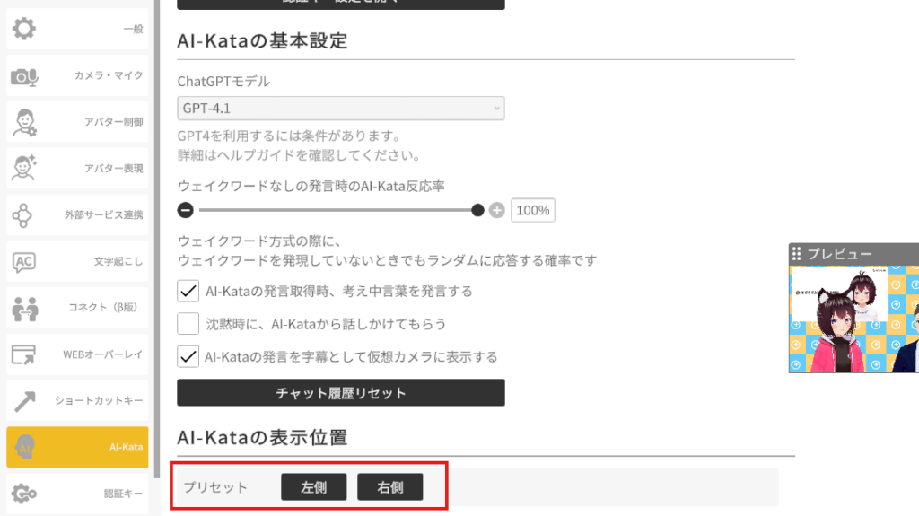 3.AI-Kataアバターの表示位置を設定します。